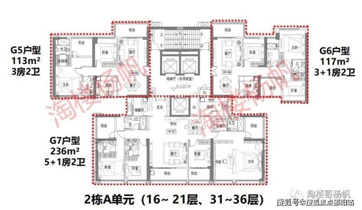 另外,28层至42层南向单位则为建筑面积约220㎡-230㎡5房单位。不过,就户型图来看,宣传的3房单位,实际上很可能为“2+1”房,其中一个小房间被标注为“阳台”。