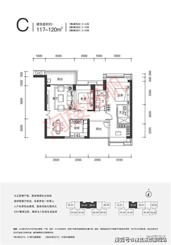 C户型117-120㎡ 1栋A单元-02、6-42层 2栋B单元-02、2-39层 2栋B单元-01、2-39层