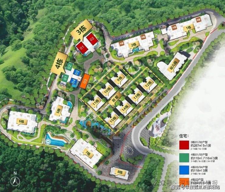 值得一提的是,为了北向看大南山的景观,牺牲掉采光的户型设计,该项目几乎占据近一半的楼盘朝向为北向。