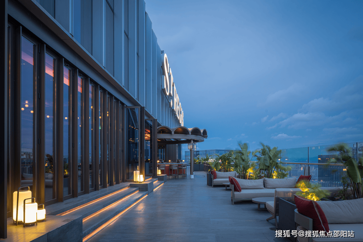 宾客在此可享受世界一流的顶级设施,包括215米高的空中酒廊、悬挑式空中花园、全日餐厅、健身中心、游泳池及水疗中心。此外,位于裙楼三层的770平方米宴会厅配备动态幕墙系统及自然采光,可满足多种活动与宴会需求。