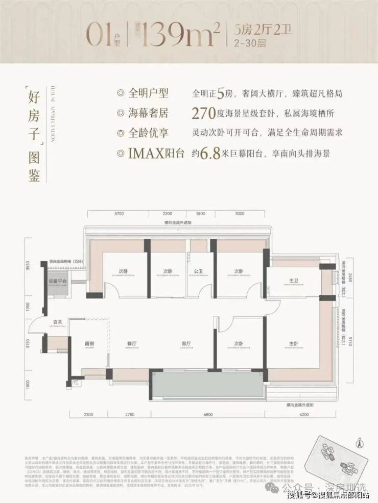 约80%南向全明大面宽户型,全屋环绕式采光面,盛满一室阳光;约6.3-6.8m阔景大阳台,晨间瑜伽、午茶瞰海、暮色小酌,海幕星空自成生活背景;海景星级套卧,270°环幕自在观景,享受头排海景盛宴。