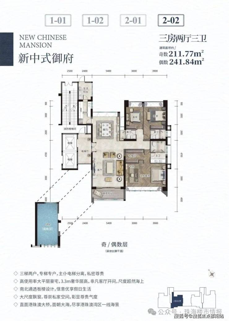 高使用率大平层豪宅,3.3米奢华层高,非凡客厅开间,尺度超然海上