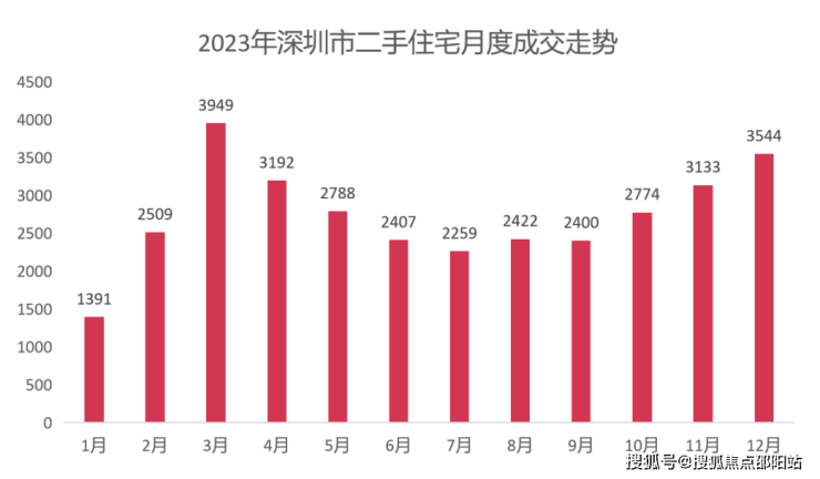 其中,12月深圳二手住宅过户3544套,环比上涨13%,也是2023年月度成交量第二高。