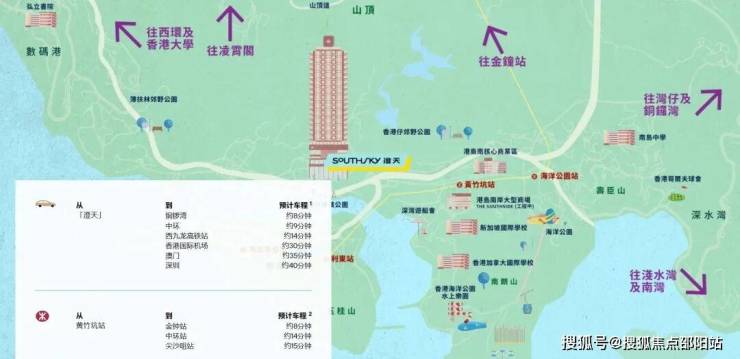 屋苑开车前往港九核心区半小时内即可到达,并且已落实建造港岛南线西段,将来于黄竹坑站转乘可至金钟等地