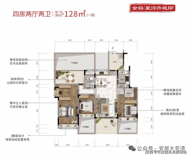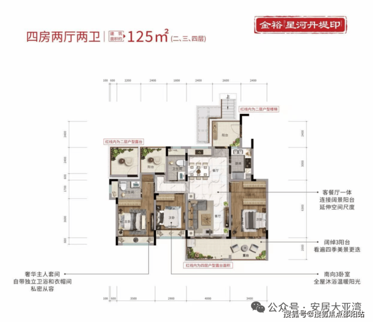 三层:建面约125㎡,可做4房