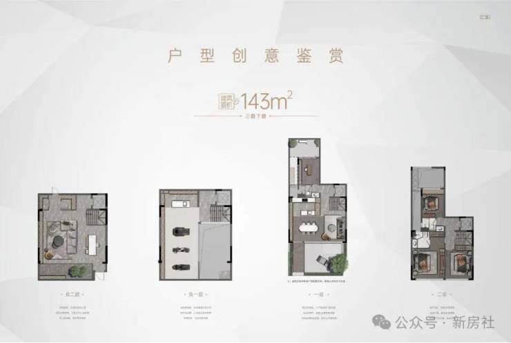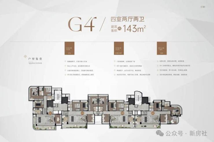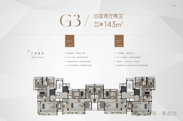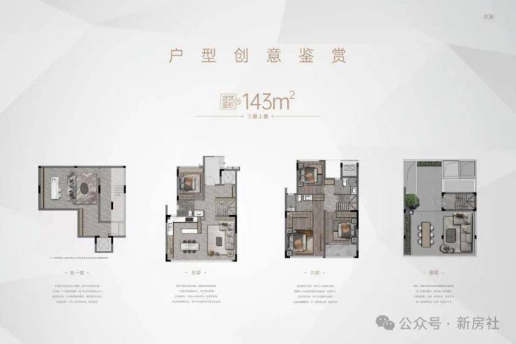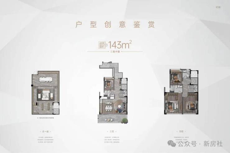 【户型】:约143㎡小高层,约143㎡二、三叠院