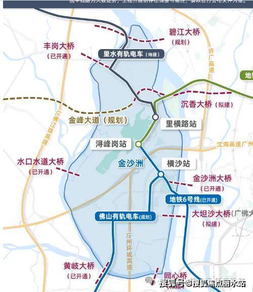 >金沙洲大桥、大坦沙大桥、沉香大桥(在建)、同心桥(在建)、水道口大桥、黄岐大桥、丰岗大桥、碧江大桥(规划中)全面环绕,打造畅达交通环境。