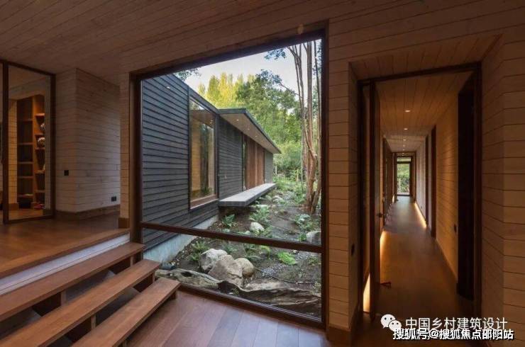 这座X型建筑有4个翼楼,可作为独立的生活用房。它们与木制的通过调制相结合,并有几个内部庭院,具有不同的景观。住宅周围环绕着树木,这是装饰元素,创造了放松和与自然统一的气氛。