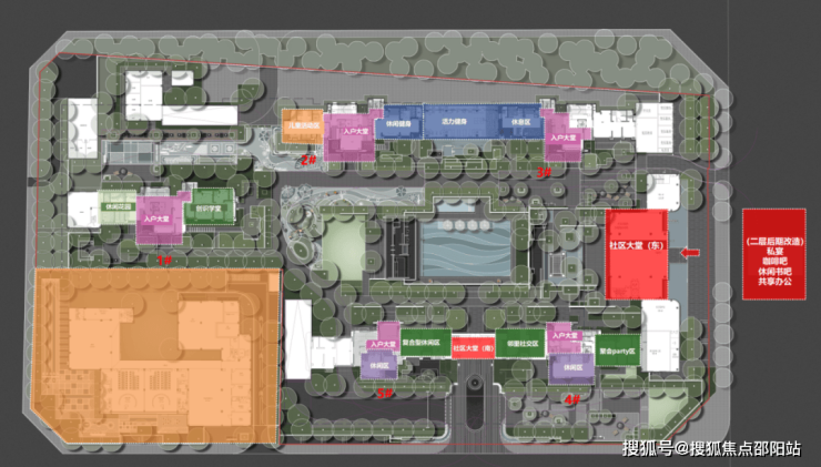 利用社区东大堂作为集中会所,植入接待区、咖啡吧、休闲书吧、共享办公等功能。根植岭南人文自然景观及名居特色,着力打造奢隐雅居。