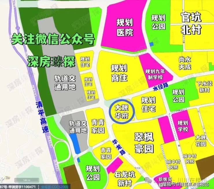 大靓华府毗邻清平高速出入口仅500米距离,现有的5号地铁线“上水径站”距离约1.5公里(百度测距),步行需要22分钟,规划有25号线“水径西站”就在项目约200米范围内。