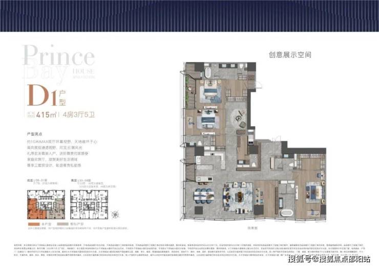 大平面大尺度定位,层高约3.6米,横厅设计确保最大化观景面,全户型纵享环幕视野。项目打造主力建面约215-415㎡纯粹品质公寓共191席,顶层为建面约1270㎡公寓产品。