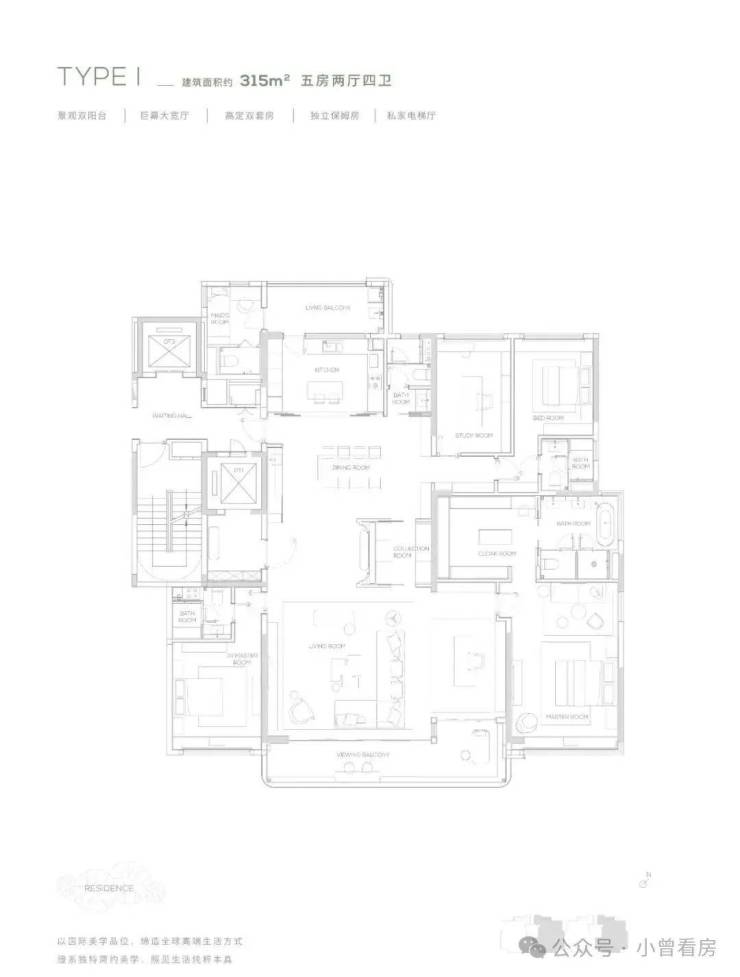 【315㎡户型】南北双阳台-独立保姆房-巨幕大宽厅-私家电梯厅