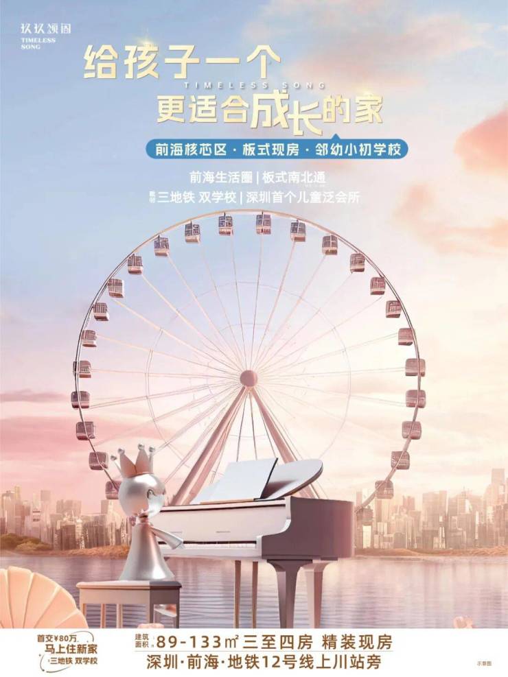 玖玖颂阁项目位于深圳宝安区,占位前海黄金圈内环,享受宝中醇熟配套。项目在售建面89-133㎡三至四房,全南向板楼设计,通风采光佳;建面89㎡三房两厅两卫,人生第一套房不必迁就;建面128-133㎡四房两厅两卫,阔绰奢宅,三代同堂的进阶之选。