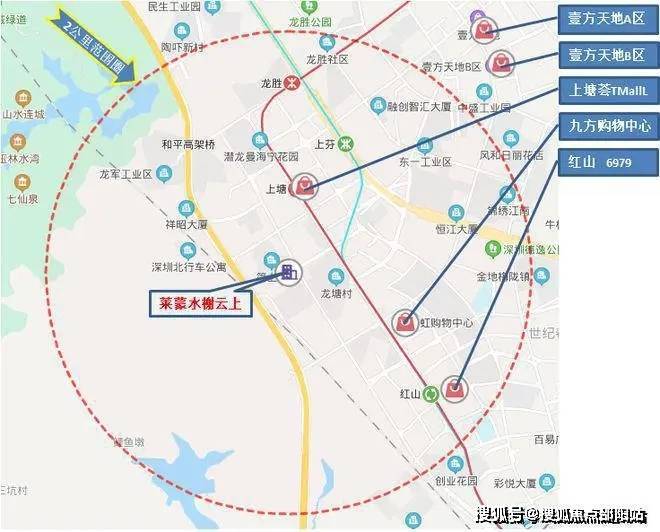 商业:项目自带约3000㎡商业;与项目相邻的卓越皇后道配备有社区底商;另外与项目相邻的简上村、龙塘村内分布有较多零散式商铺,也太包含有日用零售,传统餐饮,菜市场等。项目的东侧距离稍远一点便是红山的核心居住区了,这里很多居住成熟的小区,例如星河传奇、中央原著、水榭1-6期、华业玫瑰、中航天逸等,这些小区都配备有一定规模的社区底商,总体看就近满足日常生活购物所需是没有任何问题的。