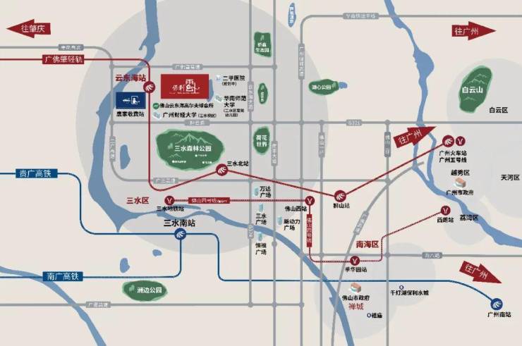 教育配套:云东海幼儿园、博文小学、三水中学、区级文化中心、云东海学校、华中师范大学附属(佛山)星晖高级学校;