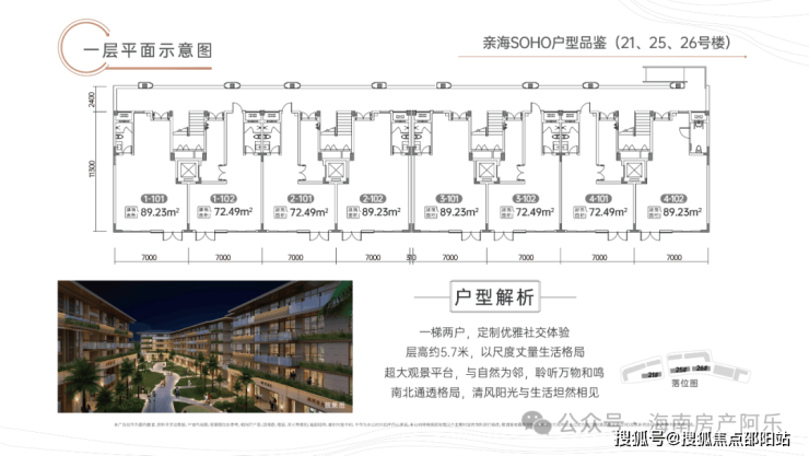 亲海soho:72㎡-92㎡ 3房(层高5.7米)