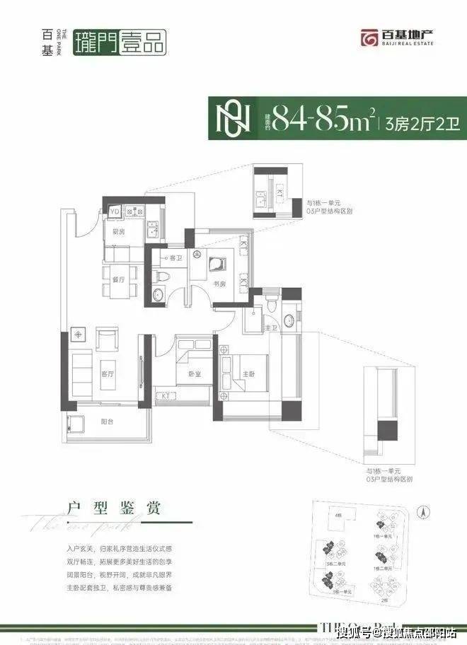 84㎡的3房2厅2卫,设计的是经典竖厅格局,进门入户玄关,客厅3.5米开间,LDKB一体化设计,动静分区,主卧+1个次卧270°飘窗,U型厨房,卫生间干湿分离,得房率:71.29%(不含赠送),西南或西北朝向。