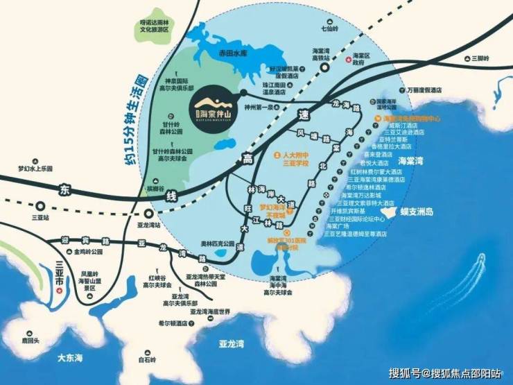 【32家超五星级酒店带】亚特兰蒂斯、华尔道夫、WJ万豪、洲际、四季、康莱德、威斯汀、香格里拉、瑰丽、艾迪逊…… 【天然矿泉】“神州第一泉”南田温泉 【国际医疗】301解放军总医院海南分院、北京广安门医院、北大口腔医院、哈佛医学院附属预防与肿瘤治疗医院、美国赫尔曼纪念TIRR康复医院、石药·德中医疗康复中心 【名校名师】中国人民大学附属中学 【餐饮畅购】海棠湾国际免税城(亚洲最大单体免税城)、君御68商业街、喜粤8号等四家米其林品牌餐厅、国内唯一黑珍珠双钻品牌四叶寿司…… 【缤纷休娱】亚特兰蒂斯水世界及失落水族馆(全球第三座)、海昌梦幻不夜城、宽窄巷子、太古里、HELLO KITTY主题乐园、水稻国家公园、海中海高尔夫球会、神泉国际高尔夫、铁炉港世界游艇码头、三亚当代艺术馆…… 【旅游胜地】蜈支洲群岛、椰子洲湿地、皇后湾群岛、海棠湾水稻国家公园……