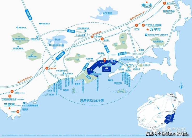 项目与高铁神州站直线距离仅约6公里,2站即达三亚、5站即达海口,约6公里即达海南环岛高速神州半岛匝道出入口,约10公里即达兴梅大道,轻松环游全岛。往北约53公里即达琼海博鳌机场,乘高铁5站即达三亚凤凰机场(约110km)、4站即达海口美兰机场(约150km),全国主要城市航班直飞。