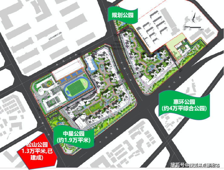 项目自建2大儿童教育主题社区公园(荣获美国IDA国际大奖),毗邻约1.3万㎡松山公园、约4万㎡惠环公园,超8万㎡四大公园环绕,缔造仲恺中心生态健康人居向往