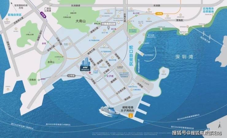 屹立太子湾之上,聚集海陆空轨立体交通,蛇口邮轮母港通达全球,深圳湾口岸高效过境,真正实现粤港澳大湾区一小时商务生活圈