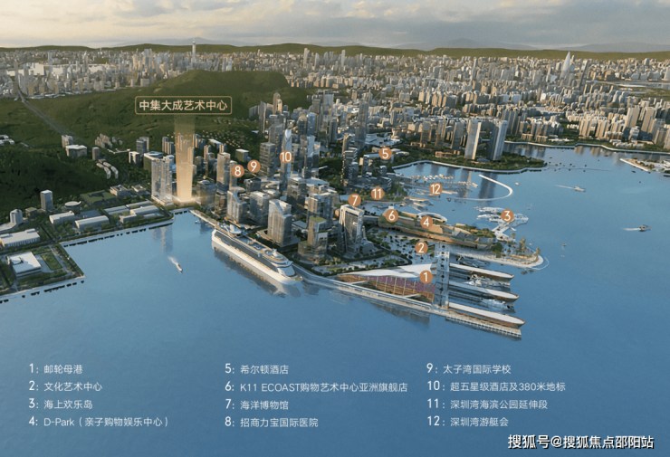 蛇口联动前海、深圳湾,构成三大千亿级经济中心格局。蛇口国际海洋城战略,太子湾作为主要承载区,对标美国哈德逊城市广场,约170万㎡滨海都会区大器已成