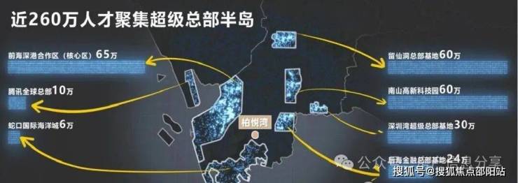 七大全球总部基地,激荡全球资本的湾区超核,由总部经济带串联,吸引大批诸如腾讯、大疆、阿里巴巴等行业龙头企业,以及大批总部企业入驻,未来将吸引260万人才聚集。