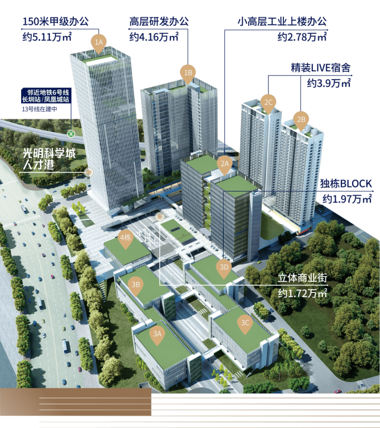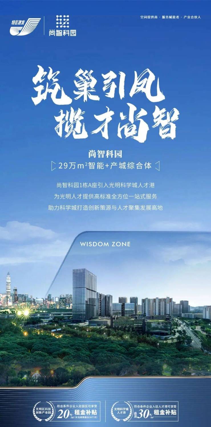 尚智科园立足光明科学城发展高地,打造29万㎡智能+产城综合体,集创、科、研、产、商、居六位一体的 “产城社区”,150米甲级办公、高层研发办公、小高层工业上楼等多元产品满足产业创新孵化、研发制造、企业加速、总部基地全周期发展需求,成就企业与人才的首选园区。