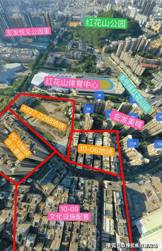 项目对面坐拥全区最大红花山体育中心,光明区文化馆在侧。