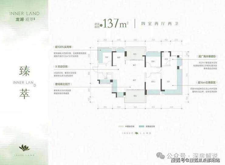 • 137㎡ 4房2卫:宽厅4+1户型,南北双厅,南光南法园林,北看红花山