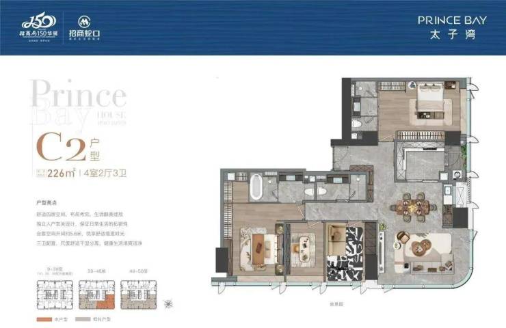 面积:215㎡2房2卫,306-311㎡3房2厅3卫,415㎡4房3厅5卫,顶层1270㎡大平层可做6-8房
