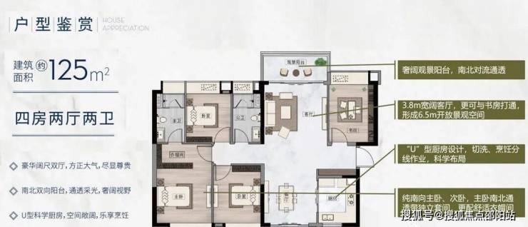 L型厨房带阳台,科学动线,明厨烹饪 豪华主卧套间,独立卫浴,私密起居