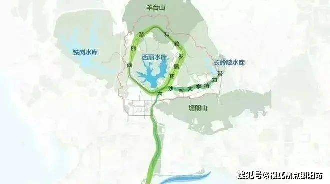 【一方湖山大境】三山环抱,一湖为邻,西丽湖一线景观资源,千万顷珍稀原生资源,造就一席湖山大境;14公里西丽湖环湖栈道+13.7公里大沙河生态走廊+34公里深圳湾环湖栈道,汇聚城市自然资源标地,山河湖海城市绿脊.