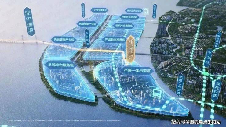 深中通道口首站”馬鞍島”,占地約35平方公里,規劃人口約32萬,北部規劃為綜合功能區,南部規劃為翠亨科學城。未來將圍繞生物醫藥、先進裝備製造、新一代資訊技術和現代服務業打造粵港澳大灣區國際科技創新中心。截止2020年8月23日,98家企業,138個項目落地,“創新創業”高地已初步形成。