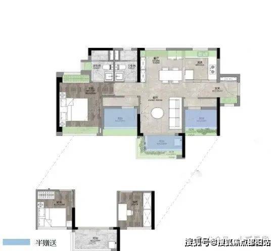 2,实用率做接近100%的项目,赠送率高,其中85%户型做到南向设计,三 四开间朝南, 1+X灵活改造空间。