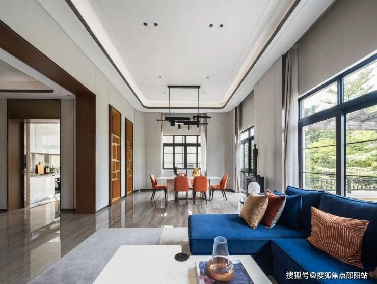 轻奢软饰增强空间呼吸性,深邃格调提升艺术气息。艺术吊灯、典雅陈设、清新原木、奢华石材,深浅呼应的软硬搭配,以爱马仕为主加深蓝点缀,简雅大气而不显沉重。