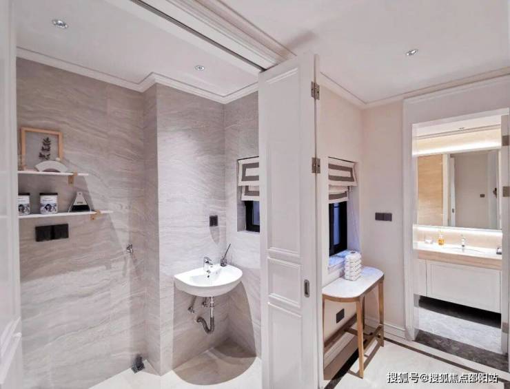 遵循动静分区的设计主旨,南向生活空间布满惊喜:超大尺度的独立奢品间,多个奢适酒店风卫浴间,多功能台盆镜柜……公共场域与私人领地互不干涉,从而留足了独立且自由的世界。