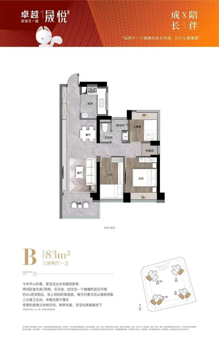 拟建面约83㎡三开间朝南:为生活增添更多阳光与视野,让人生更多灿烂与健康