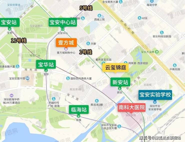 云玺锦庭项目位于 地铁1号线 “新安站” C出口 50米,妥妥的地铁口物业。