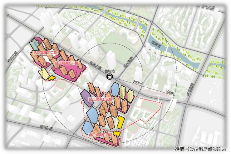 合正观澜汇三期分三期开发拆迁用地124281.8㎡,云境、云庭地块共分10栋开发,含超高层住宅、酒店、商业、21班幼儿园等配套设施。区域价值;项目交通;地铁:4号龙华线延长线茜坑站B出口、18号线(规划)、22号线(规划)。