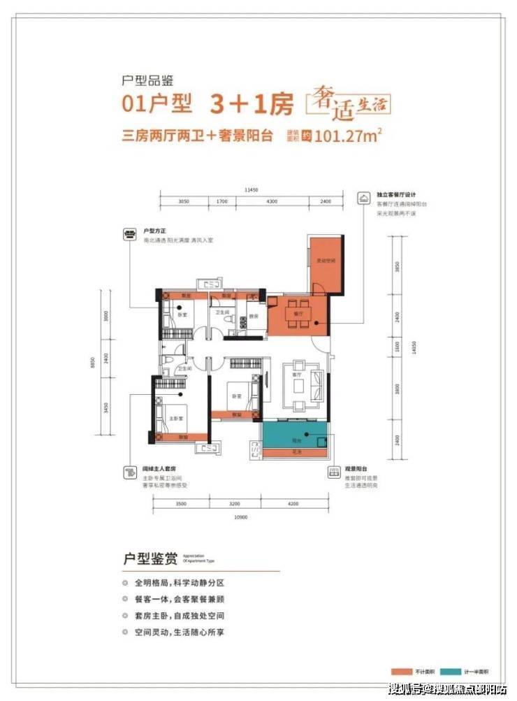 (1)01户型(101㎡):四房两厅两卫,南北通;【售罄】