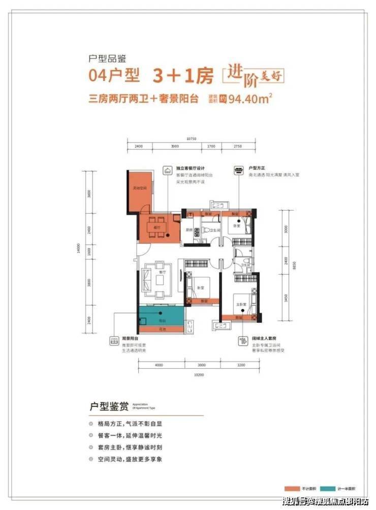 (3)04户型(94㎡):四房两厅两卫,南北通;【售罄】
