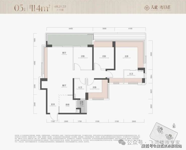 113㎡户型作为项目的主力户型(占比约80%),采用经典的竖厅设计,实现了南北通透。该户型最亮眼之处在于其灵活性:6.4米景观阳台可与次卧连通,根据需要改造为开放式书房或儿童活动区。