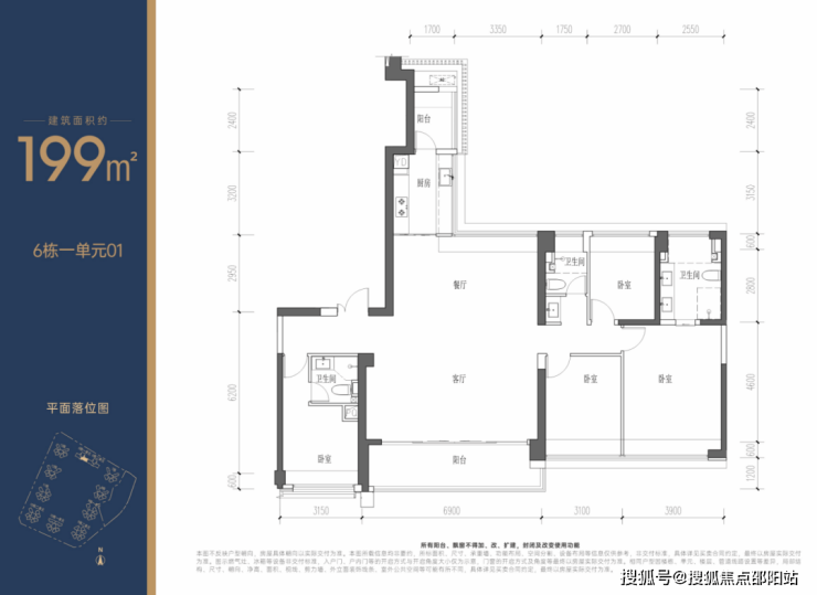 169㎡的4房2厅3卫,设计的是竖厅格局,2梯2户,专梯入户,独立入户玄关,客厅4.65米开间,LDKB一体化设计,四开间朝南,双主卧套间,4个卧室分别做到了主卧18.98㎡/套间12㎡/次卧9.35㎡/次卧9.04㎡(包含墙体飘窗),客厅连接次卧出7.47米长的大阳台,看花园全貌景观,二字型厨房带1个生活阳台,公卫三段式分离,得房率68.58%(不含赠送),正南朝向。