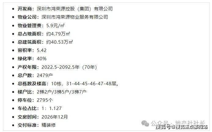 鸿荣源珈誉府3期,总占地面积约4.79万㎡,总建筑面积约40.53万㎡,计容建筑面积约27.63万㎡,容积率5.42,绿化率40%,共由10栋总高31-48F住宅组成,其中6栋1/2单元住宅44F,7栋/8栋住宅48F,9栋1单元住宅46F,9栋2单元住宅45F,10栋1单元住宅47F,10栋2单元住宅31F,11栋住宅46F,12栋/13栋住宅48F。