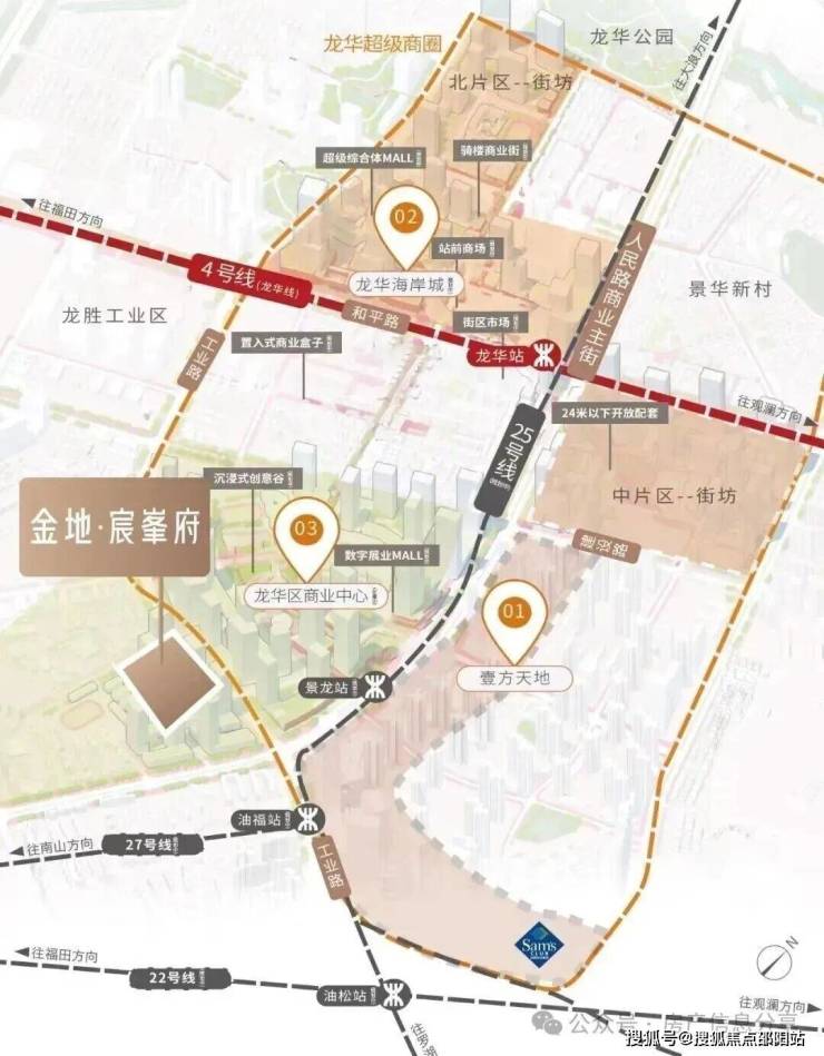 位置更好得幸福城臻城目前在售96㎡410万起步贵的480万左右,金地目前拿证折后得这个价格93㎡也在400万左右,均位于龙华商业旧改范围内,距离相隔不远,周边已有非常成熟的商业配套——鸿荣源壹方天地约60万㎡的集中式商业。