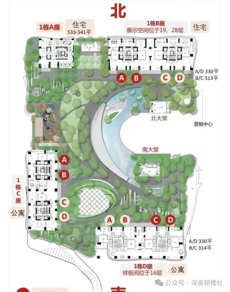 交通和商业配套非常强大,北面是深圳的东西主动脉深南大道,多条地铁口交汇,本身就是三大开发商一起打造的综合街区内项目,居住会非常便利。