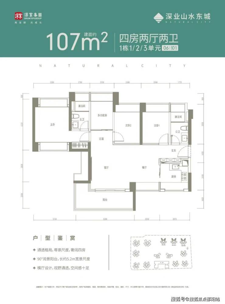 项目主推产品为建面约80-131㎡全南向精装3-4房住宅,提供全功能玄关、大开间阳台。户型可选范围较大可以满足刚需上车,改善换新等多类型家庭需求。