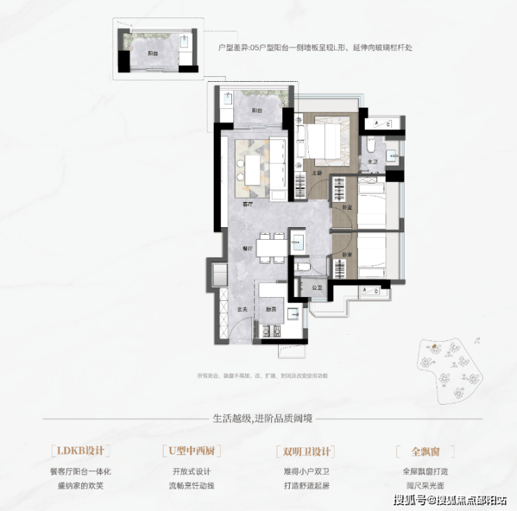 1、全飘窗打造‼保留一期同等大尺寸阳台
