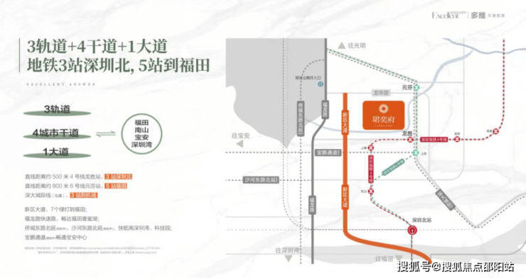 项目位于位于龙华区大浪街道龙坂大道与锦华南路交汇处,是卓越城市综合体项目内的住宅,其综合体包含商业、办公、酒店等项目。